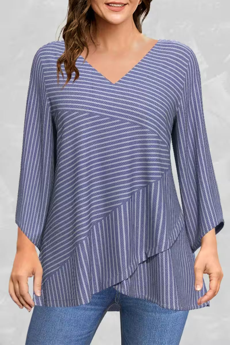Plus Size Casual Striped Print V Neck Asymmetric – Women's Top