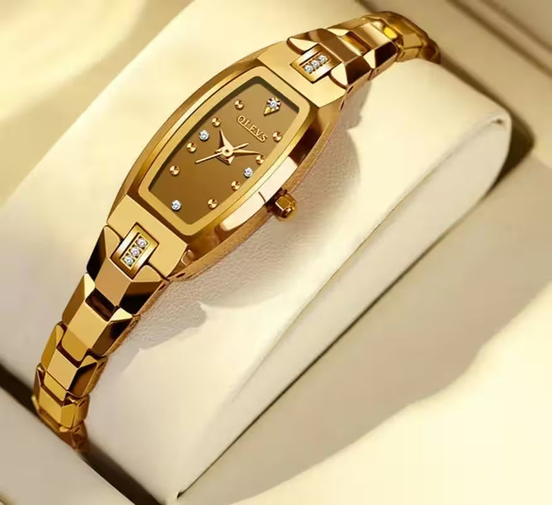 Introducing the OLEVS Fashion & Casual Watch, a stunning timepiece that combines modern design with exceptional durability. With its unique tonneau-shaped case and 15mm dial diameter, this watch makes a bold yet understated statement on your wrist. Crafted from tungsten steel, both the case and band ensure unmatched strength and a polished, sophisticated finish.