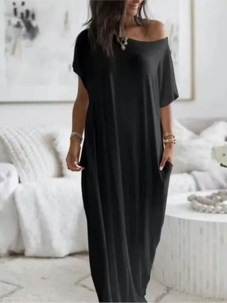 Step into effortless elegance with our Off-Shoulder Batwing Sleeve Slant-Neck Maxi Dress by Flair Feminine — designed for women who crave style without sacrificing comfort.