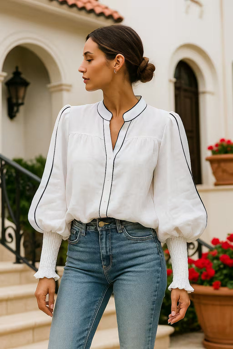 Whether you're heading to brunch, the office, or strolling the city streets, the Puff & Grace Blouse elevates every look with ease. Perfect for women who crave refined fashion with a touch of originality.